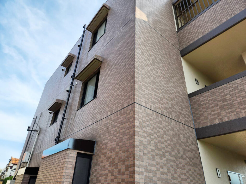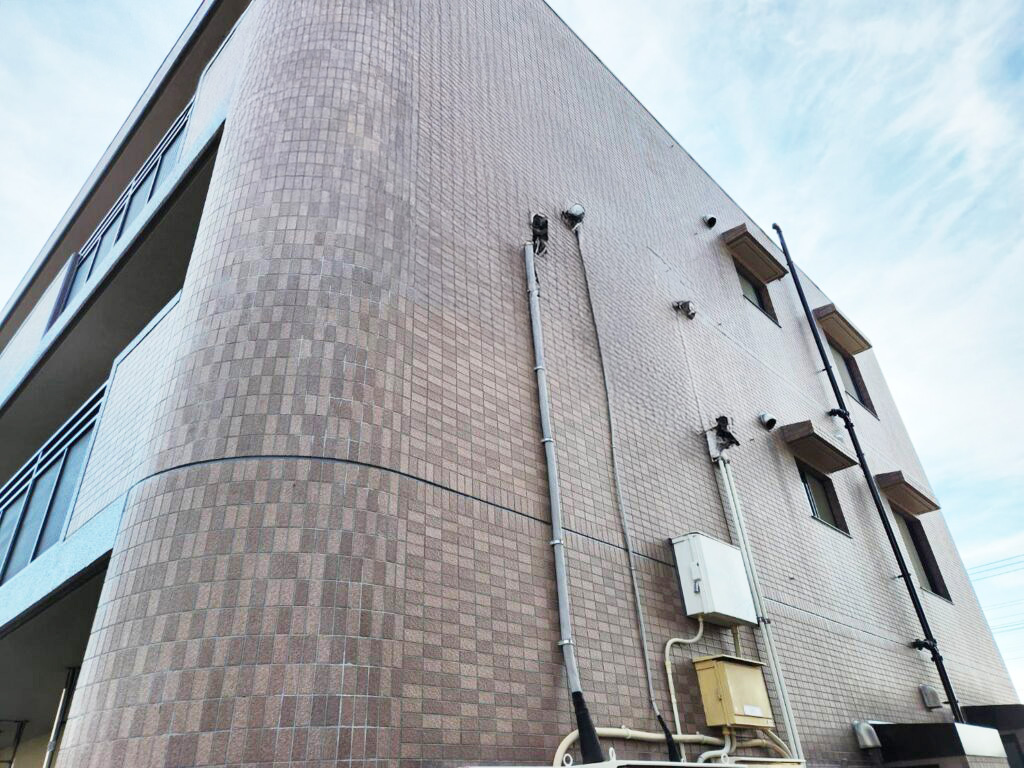 外壁の劣化を放置するとタイルの剥落や雨水浸入、躯体劣化を招き、物損事故や将来的な大規模修繕につながる恐れがあるため、下地補修やタイルの浮き補修を行ったうえで、建物の状態に適した塗装をご提案しました。
